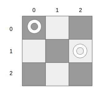 (1, 2)에 말을 놓아보니 충돌하는 경우가 없다.
