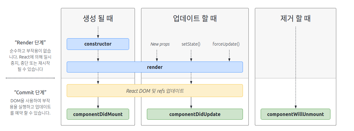 컴포넌트가 렌더링 될 때 몇 가지 상태 변화가 있는데 크게 몇 가지로 나눌 수 있다.