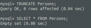 만일 테이블의 모든 데이터를 지우고 싶다면 TRUNCATE [테이블명]; 을 입력해주면 된다.
