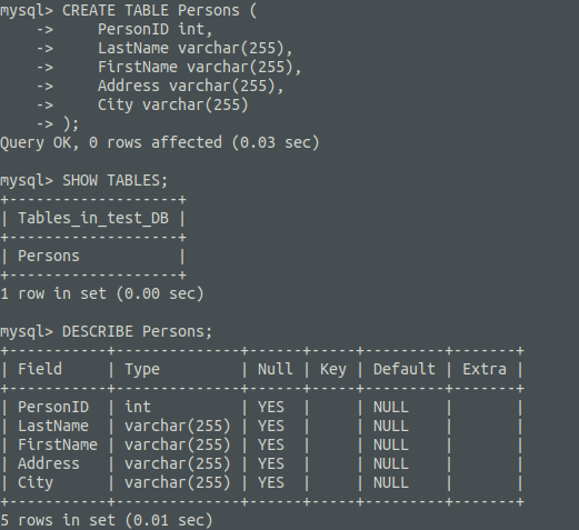mysql> DESCRIBE [만든 테이블 이름]; // 만든 Table 정보 확인