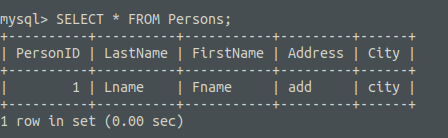 Persons 테이블 안의 모든 데이터를 확인하였다.