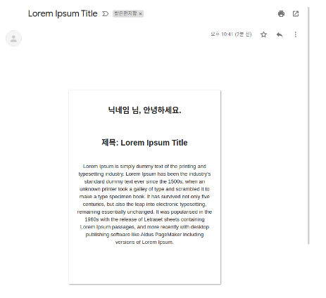 이렇게 원하는 형태로 메일이 온 것을 확인할 수 있다.