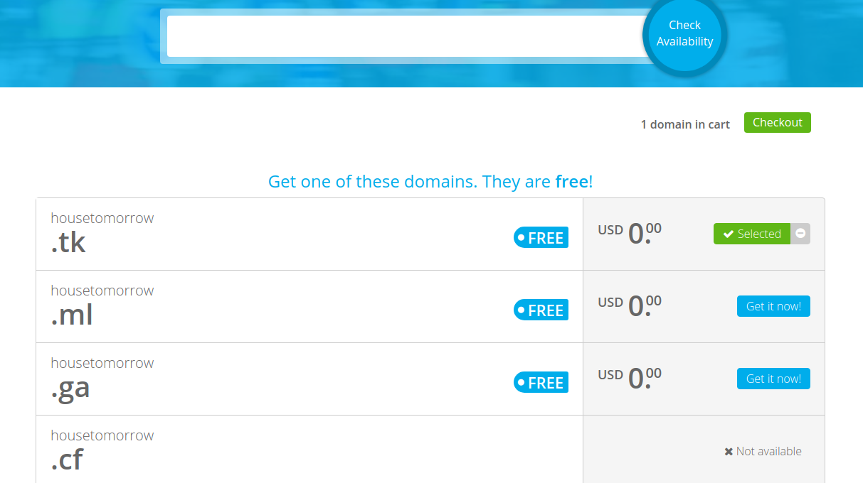 이중 원하는 도메인을 클릭한 뒤 Checkout을 클릭하고 구매를 진행해준다.