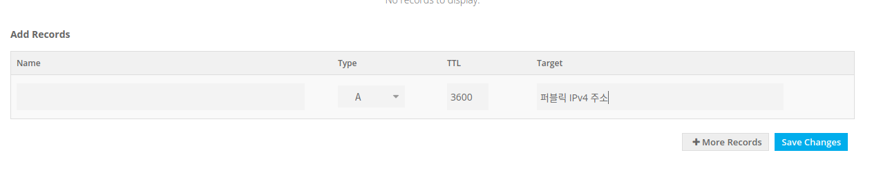 (만약 서브 도메인을 연결하고 싶다면 +More Records를 클릭해서 연결시켜주면 된다.)
