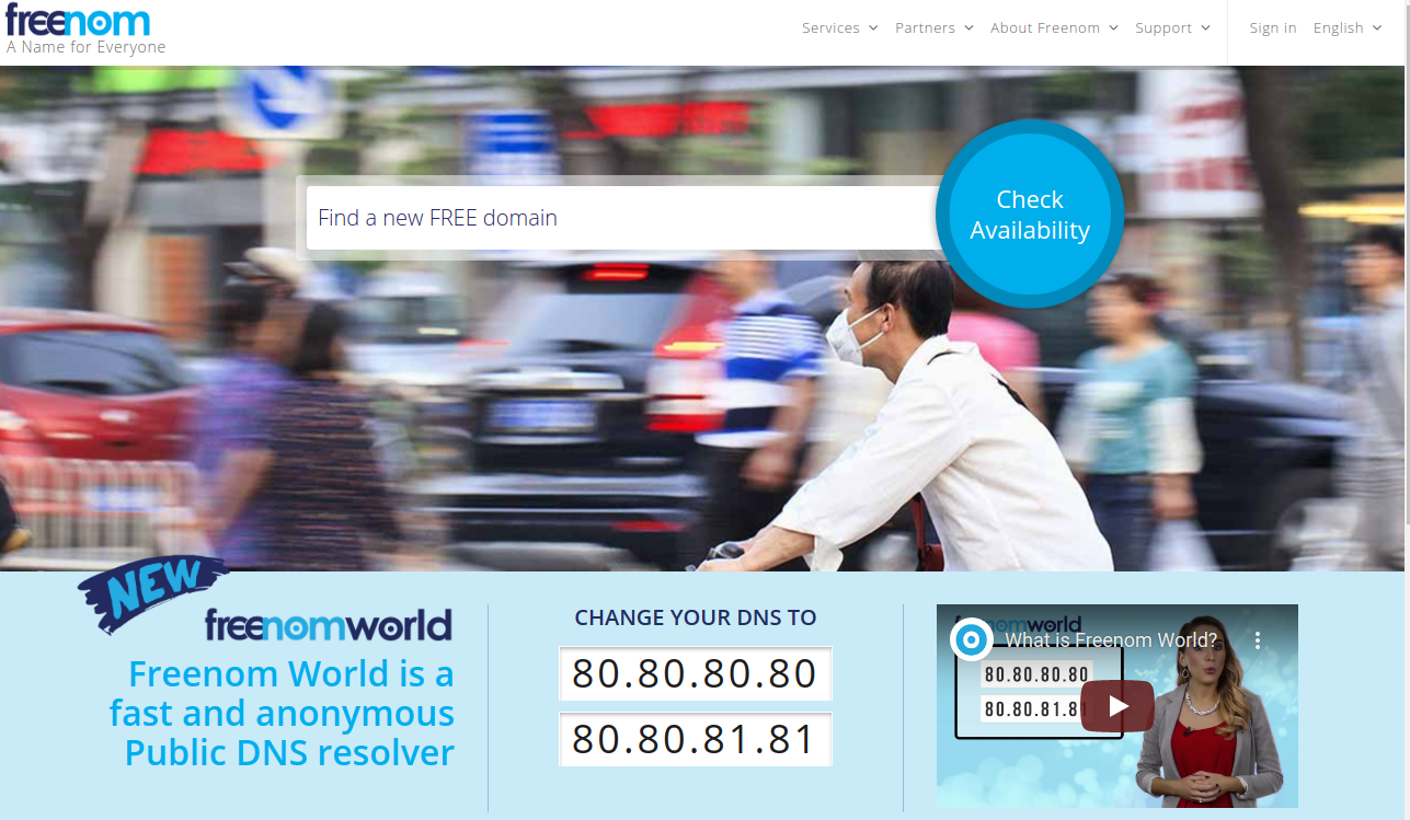 freenom 메인페이지이다. 중앙에 보이는 인풋 박스 안에 원하는 도메인을 넣어 사용 가능한지 확인해본다.