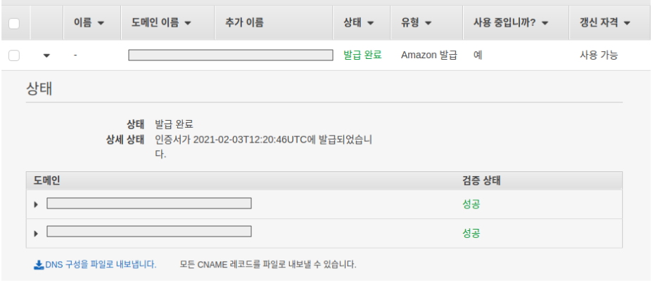 active 상태가 되면 이제 Route 53으로 넘어가 마지막 설정을 진행해주면 된다.