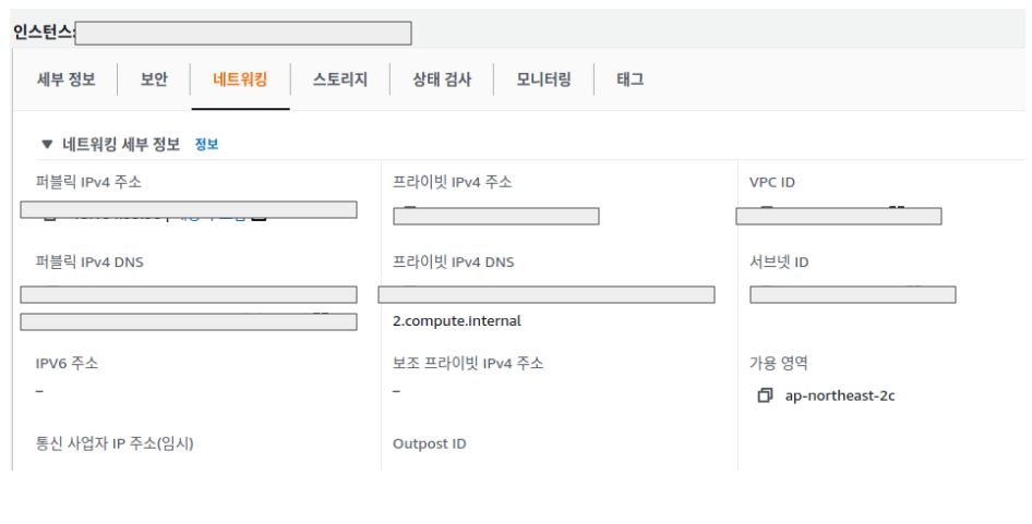 확인하려면 인스턴스로 돌아가서 인스턴스를 클릭한 뒤 네트워크 탭을 누르면 된다.