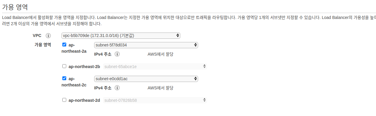 그다음은 가용 영역 선택인데 이건 생성한 인스턴스에 따라 다르다.