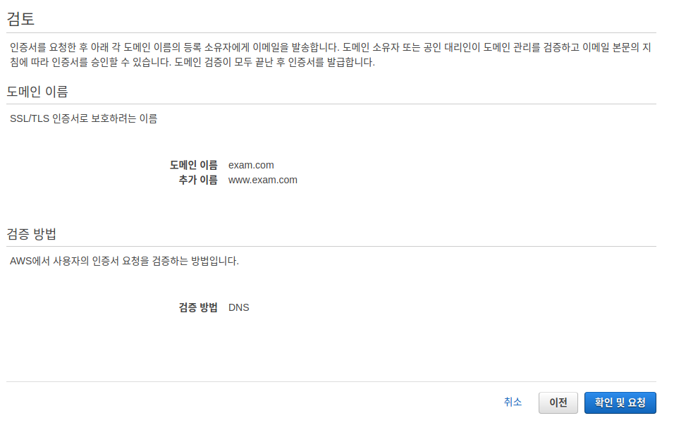 검토 후 확인 및 요청을 클릭하는데 이다음 단계가 정말 오래 걸릴 수 있다...