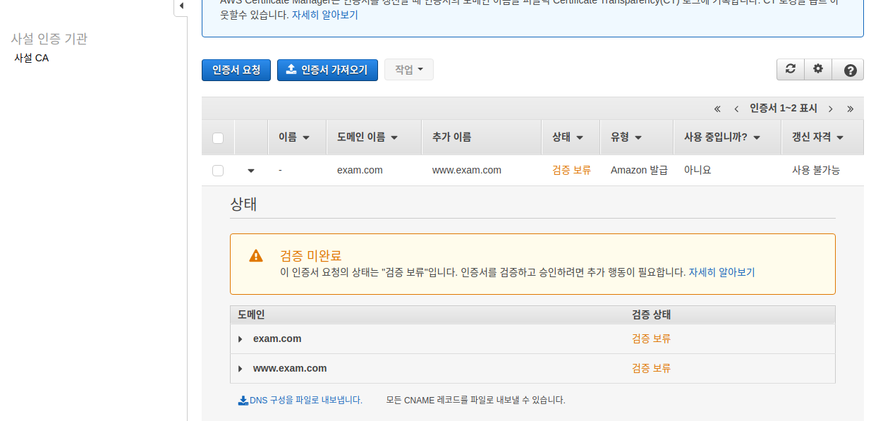 여기서 검증 완료가 되어야 이 인증서를 사용할 수 있는 상태가 된다.