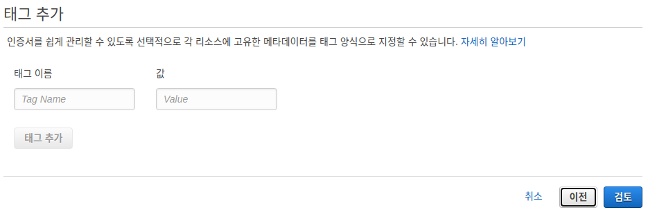 그다음 단계인 태그는 딱히 추가하지 않아도 돼서 나는 추가하지 않고 넘어갔다.