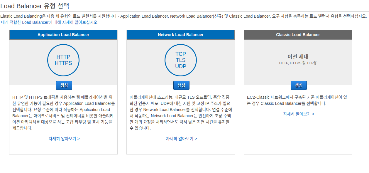 (맨 우측(Classic Load Balancer)과 동일하게 https 설정이 가능하지만 Application Load Balancer가 좀 더 기능이 좋다고 한다.)