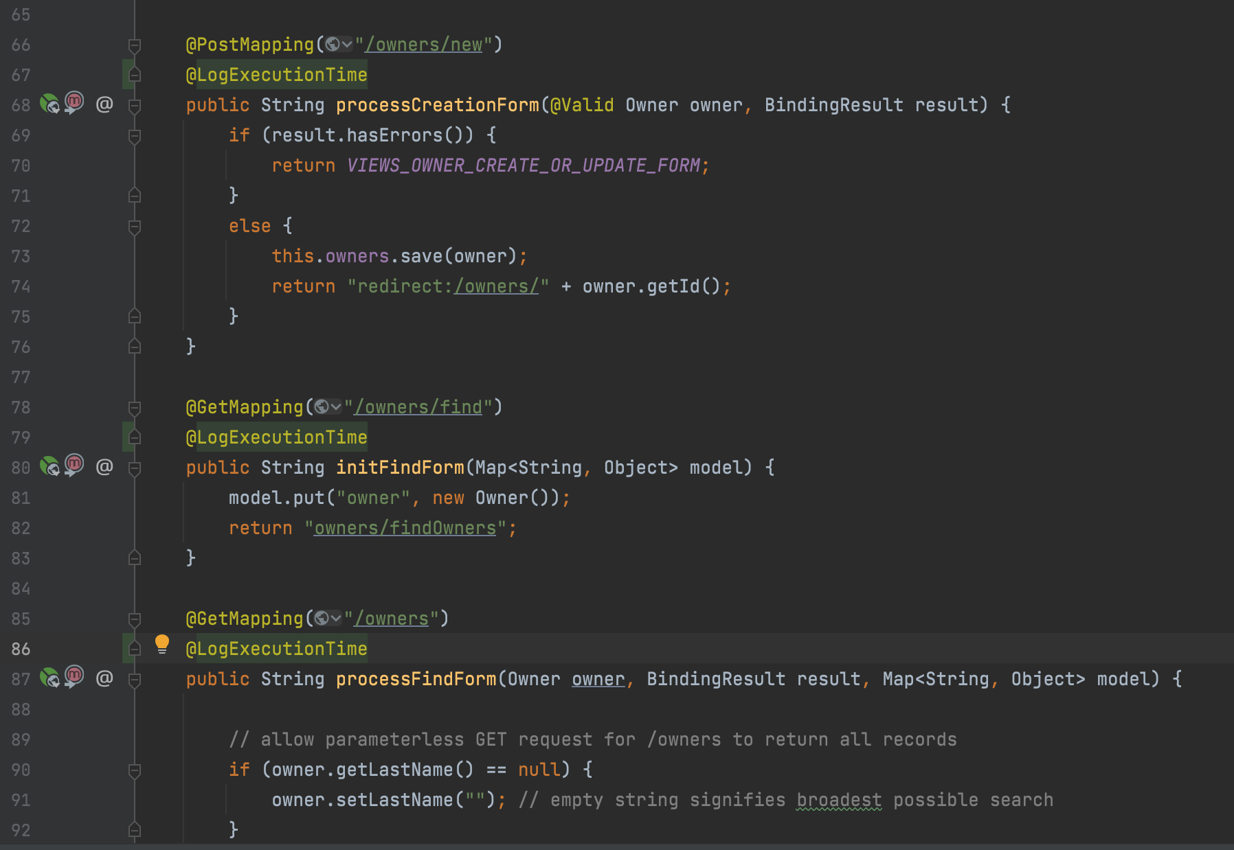 @Around("@annotation(LogExecutionTime)")