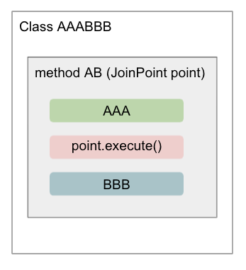 // Around 애노테이션으로 pointcut 표시 해줌 (advice 가 적용될 위치)
