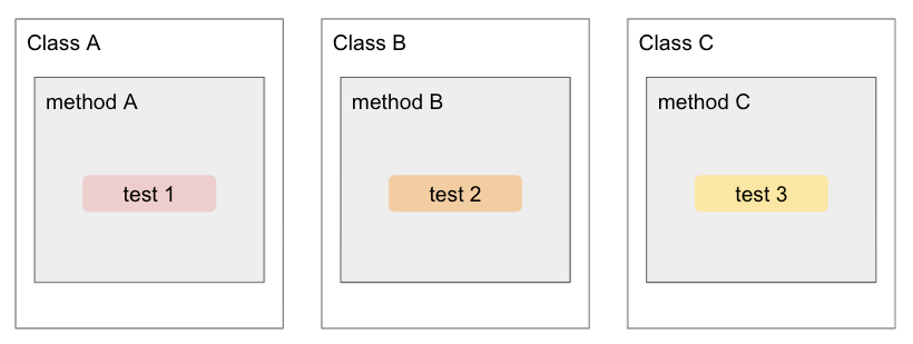 이렇게 세 개의 클래스가 있고 각 클래스의 핵심 기능 (가운데 test 블록) 외의 부가적인 기능이 모두 동일하다고 가정하자.